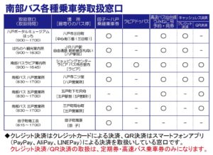 ※現在、ショッピングセンターラピア バス待合室内「南部バス案内所」のみで販売しております